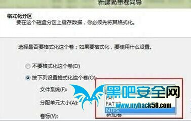 8、之后選擇格式化方式,建議使用NTFS格式,點擊“下一步”。