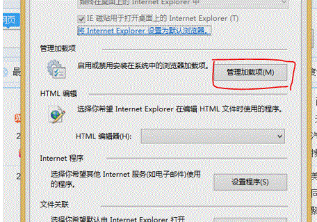 3. 在“Internet選項”下,點擊“程序”下的“管理加載項”;