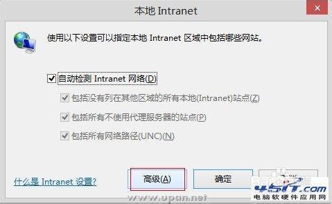 2、進入本地Internet之后,再單擊【高級】按鈕;