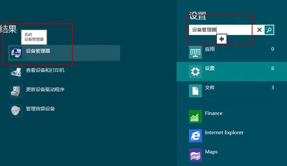 2、選擇“設(shè)置”,輸入“設(shè)備管理器”。如圖(6)