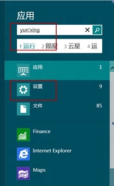 2、選擇應(yīng)用-輸入 “運(yùn)行”,系統(tǒng)搜索出“運(yùn)行”-左邊會(huì)搜索出“運(yùn)行“,點(diǎn)擊“運(yùn)行”。圖(9)(10)