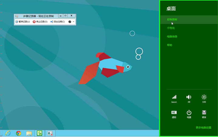 1、鼠標(biāo)移到屏幕右下角,右方會出現(xiàn)如圖所示選項(xiàng);