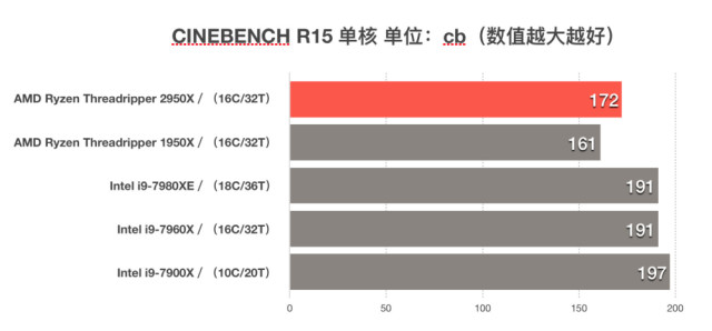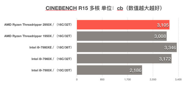 處理器性能對比評測:(參考對比產品Threadripper 1950X、i9-7980XE、i9-7960X、i9-7900X)