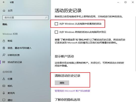 以上就是Win10系統清除時間軸記錄和關閉時間軸功能的方法介紹了,非常的簡單,不想再使用時間軸功能的用戶可以按照上面的方式進行一下設置,時間軸就可以關閉了。