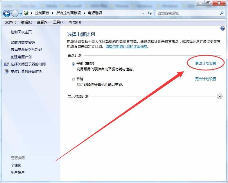 3、電源選項(xiàng)窗口中,選擇更改計(jì)劃設(shè)置選項(xiàng)。