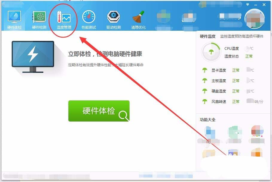 1、打開(kāi)魯大師軟件,單擊溫度管理選項(xiàng)卡。