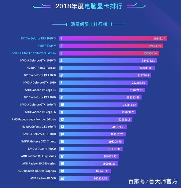 去年新增的高端顯卡其實(shí)不算多,屈指可數(shù)的也就英偉達(dá)RTX2080系列萬(wàn)元顯卡,這款顯卡表現(xiàn)如何呢?魯大師數(shù)據(jù)中心近日發(fā)布了2018年度顯卡性能榜單,NVIDIA Geforce RTX 2080 Ti就以超過(guò)40萬(wàn)的高分奪得冠軍頭銜。