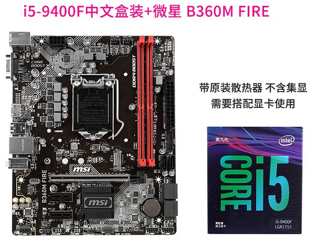 | 處理器 | Intel九代酷睿i5 9400F盒裝+微星B360M FIRE 主板套餐 | ¥1599 |