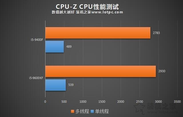 再來看一下CPU-Z測試一下兩者單線程和多線程性能差距,i5-9600KF相比i5-9400F在單線程性能領(lǐng)先了10%左右,而在多線程性能方面領(lǐng)先了約5%。