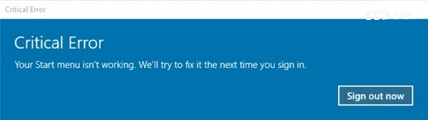 有關于windows 10系統開始菜單的錯誤,雖然微軟已經發布了幾次累積更新,但還是有不少用戶表示在安裝補丁后仍然會遇到該問題。Windows 10的“開始”菜單嚴重錯誤彈出消息建議用戶退出Windows,然后再次登錄,但重新登錄不能解決該錯誤。