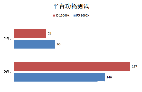 待機(jī)時(shí)i5 10600k的平臺功耗要比R5 3600X低15W,amd的MCM設(shè)計(jì)待機(jī)時(shí)功耗確實(shí)不怎么好。不過在烤機(jī)的時(shí)候R5 3600X的功耗表現(xiàn)要比i5 10600k更好,只有146W的功耗。