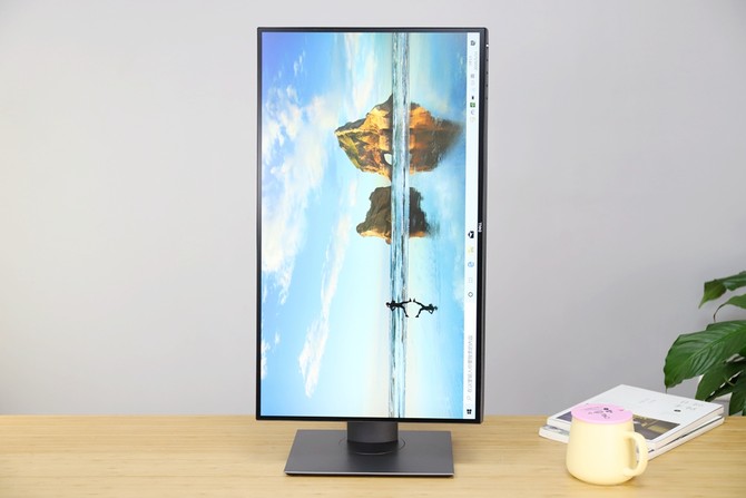 顯示器背面上部是銀色,與轉軸處的方形、內圓設計相得益彰,簡潔商務風格。通過轉軸處,你可以將顯示器調節到適合自己的角度,無論是傾斜還是豎屏,都能滿足你的需求。下部的黑色區域是接口區,除了在底部的接口,還在正面、左側邊框處設計了快捷接口。