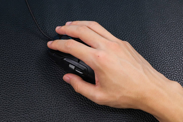 在實際使用上,雷柏V330能提供舒適的手感,對于手大的用戶來說,很適合這種體型偏大的鼠標。趴握姿勢可以獲得很好的支撐,手部放松舒適,搭配鼠標表面細膩的觸感,手感出色。