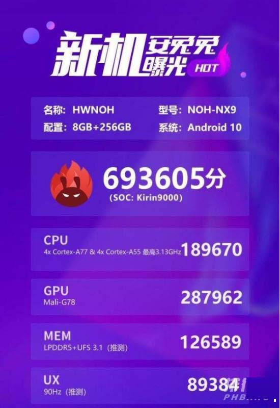 麒麟9000E處理器同樣集成巴龍5000 5G基帶、ISP 6.0、安全模塊,并且還支持LPDDR5/4X+UFS、HiFi音質、4K HDR視頻。