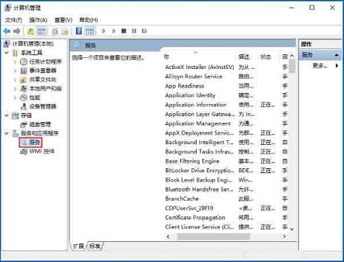 4、點(diǎn)擊服務(wù)和應(yīng)用程序之后,出現(xiàn)服務(wù)菜單;如圖所示: