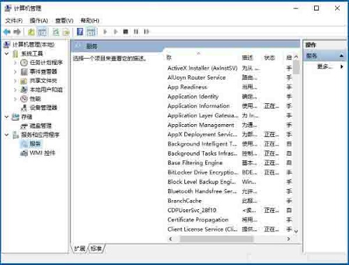 5、點(diǎn)擊服務(wù),彈出計(jì)算機(jī)所有正在運(yùn)行或停止的服務(wù);如圖所示: