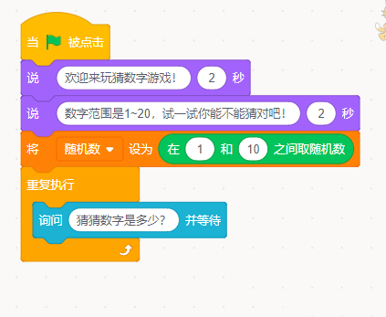 在scratch的偵測分類中,有兩個很特殊的程序模塊,即詢問和回答。當我們拖拽詢問模塊到編程區,點擊運行后,舞臺區的角色就會出現詢問的內容,下方的條形框可以輸入我們的答案。接下來我們通過一個猜數字游戲來用一用這兩個程序模塊。下面我們就來看看詳細的教程。