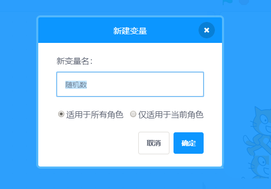 思路:設計數字范圍,并且由電腦選取這個范圍中的隨機數,完成以下程序后,當我們點擊綠旗后,就會發現舞臺左上角的變量框開始出現1~10之間的隨機數啦。