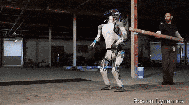 Atlas的控制系統(tǒng)能協(xié)調(diào)手臂、軀干和腿部的運動,實現(xiàn)運動時對全身進行操縱。因此,Atlas能在很多不同的環(huán)境中工作。不僅如此,Atlas執(zhí)行任務時的平衡能力使其占地面積小,空間利用率也高。