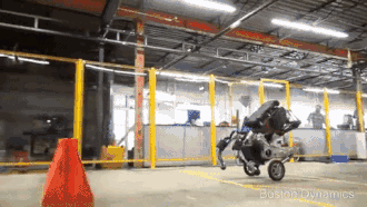 Handle高2米,重105公斤,可以拿起45公斤重的物體,使用電壓和液壓驅動,安裝了深度攝像頭。Handle在動力學、平衡和移動操控上使用了許多與原來雙足、四足機器人相同的原理,但只有10個致動關節(jié)。所以,Handle動作看起來炫酷,實際上復雜程度卻大大降低。