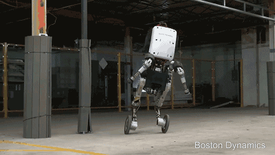 于是,Handle將多足機器人和輪式機器人的特點結合起來,有腿部就能在崎嶇的地形上行走,而把“腳”換成輪子就能更高效地移動。因此,波士頓動力也把Handle稱為“雙壁合一”(The Best of Both Worlds)的機器人。