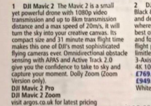 根據DroneDJ網站取得讀者消息,英國商城Argos的目錄里有Mavic 2宣傳單,其中就分為“Mavic 2 Pro”及“Mavic 2 Zoom”兩個版本。