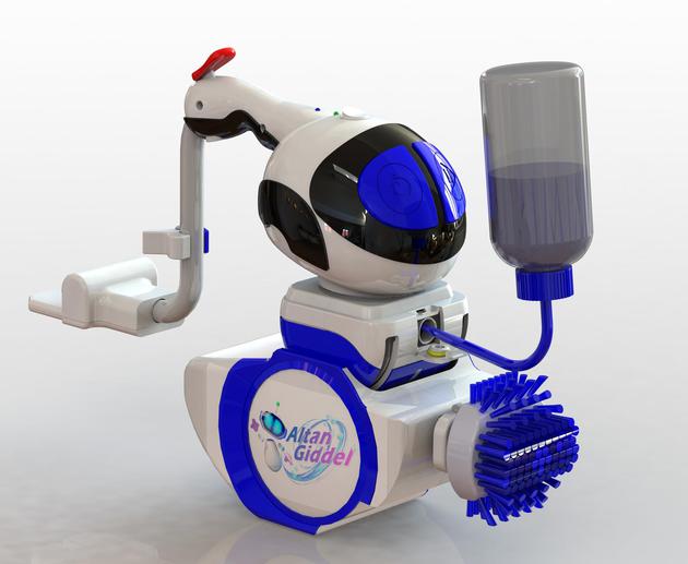 這款機(jī)器人被命名Giddel,外觀擬人化處理,看起來乖巧可愛,可無線使用。用法也很簡單,只需將帶有支架的機(jī)器人主體固定在馬桶座上,開機(jī)即可。它會通過可伸展的機(jī)械臂自動檢測馬桶的大小,自動感應(yīng)并記住馬桶的曲率,隨后開啟“洗刷刷”模式。清理范圍包括馬桶內(nèi)圈邊緣,邊緣下方直到出水口。