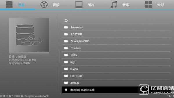 將U盤插入盒子中,打開盒子自帶的文件管理器找到當貝市場安裝包安裝即可:
