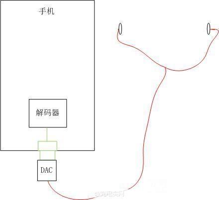 圖1為傳統模擬TYPE-C耳機音樂傳輸通道,紅色部分為音質損失,對于國產android手機來說,內置DAC已經對音質造成了最主要的音質損失。而且在進入TYPE-C口之前,還有個模擬開關用來切換音頻模式還是數字模式,然后經過TYPE-C接口,再經過耳機線,傳送到左右兩個揚聲器。其中,最重要的音質損耗在DAC部分,其他部分,只是理論上有損耗,未必真的損失聽覺效果。