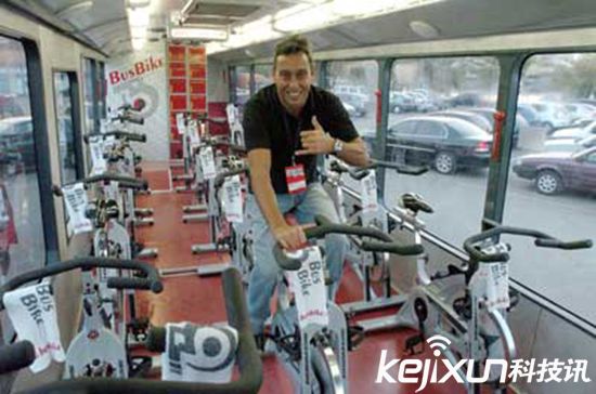 上圖中巴士里以靜電自行車為主的健身器材,人們揮汗如雨的踩著靜電自行車來達到健身的效果,但是這不是有一點浪費嗎?