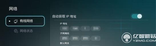 步驟三:選擇“設(shè)置”中的“網(wǎng)絡(luò)”選項(xiàng),點(diǎn)擊進(jìn)入,在界面中可以看到無(wú)線網(wǎng)絡(luò)變成了有線網(wǎng)絡(luò)連接狀態(tài)。一般家用有線網(wǎng)絡(luò)基本是IP地址自動(dòng)獲取,功用的有線網(wǎng)絡(luò)則會(huì)需要輸入IP地址。