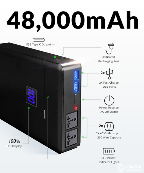 你的移動電源有多大容量?5000mAh?10000mAh?都不夠給力,來看看這款擁有48000mAh容量的超大移動電源——Plug。