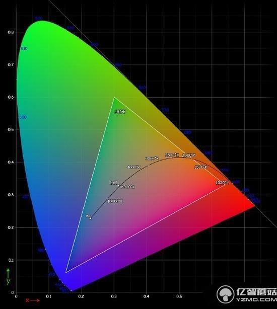 我們用sRGB來(lái)舉例,只是因?yàn)檫@種色域非常流行,是目前衡量一款顯示設(shè)備的顏色標(biāo)準(zhǔn)的指標(biāo),但是sRGB的在整體色域圖上的覆蓋范圍并不像某些其他的標(biāo)準(zhǔn)的面積那樣大,它只是現(xiàn)在大家都承認(rèn)的一種還原物體本色比較準(zhǔn)確的一種色域標(biāo)準(zhǔn)。