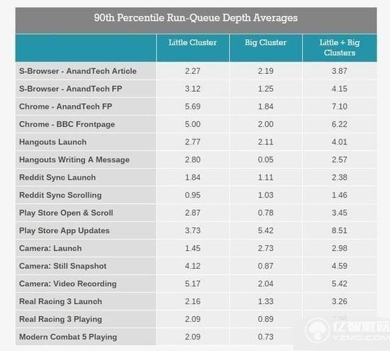 我們首先對(duì)多個(gè)不同的場(chǎng)景進(jìn)行測(cè)試,。從圖片結(jié)論中我們目前可以看出,處理器核心越多,設(shè)備表現(xiàn)就越好,尤其是在電源和負(fù)載的分配上。我們看到,四核處理器要比雙核更高效,而兩個(gè)單獨(dú)的核心群要比一個(gè)更大的核心表現(xiàn)更好。雖然在大多數(shù)的場(chǎng)景下,四核心就已經(jīng)可以足夠優(yōu)秀的應(yīng)對(duì)Android設(shè)備的日常任務(wù),但是在某些情況下,八核心的優(yōu)勢(shì)能夠進(jìn)一步體現(xiàn),尤其是在瀏覽網(wǎng)頁(yè)和安裝應(yīng)用的時(shí)候。