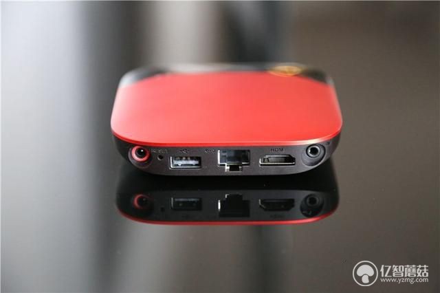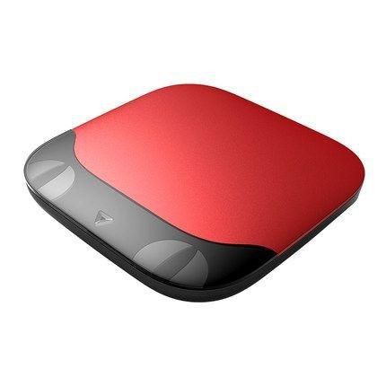 天貓魔盒M17延續(xù)了以往的黑紅配色,致敬經(jīng)典,精致洗練。整體手感小巧玲瓏,邊長10cm,厚度2.2cm,不足一元硬幣的高度,重200g,可謂是有史以來最輕薄款。