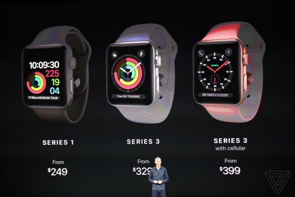 Apple Watch Series 3售價329美元起,蜂窩網絡版Apple Watch Series 3售價399美元,9月15日開啟預訂,9月22日在26個國家上市,中國市場首發(中國聯通定制版)。