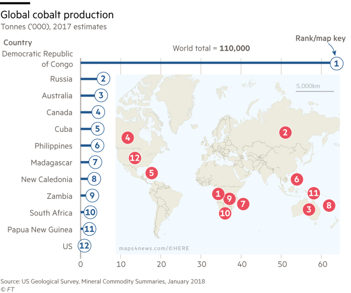 電池中用到的金屬占了整體成本的四分之一。雖然美國愛達荷、阿拉斯加和澳大利亞都發現了新的鈷礦,但它們投入生產要到 2020 年之后。