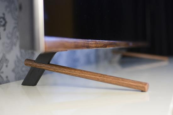 從直觀效果來看,酷開6C采用傳統(tǒng)的榫卯結(jié)構(gòu),在融合了傳統(tǒng)文化與現(xiàn)代簡約風(fēng)格的同時(shí),電視底座整體依然非常穩(wěn)固,甚至比傳統(tǒng)的金屬底座更穩(wěn)固。