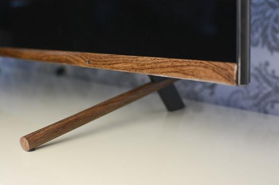 酷開6C的底座設(shè)計(jì)非常有特點(diǎn),其沿襲了中國古代經(jīng)典的榫卯結(jié)構(gòu),將現(xiàn)代工藝與古代設(shè)計(jì)完美融合,同時(shí)木紋裝飾條搭配電視本身的金屬邊框材質(zhì),也使這款電視在風(fēng)格上更加別具一格。
