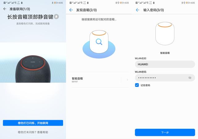 作為一款智能音箱,智能互聯(lián)當(dāng)然是必不可少的。華為AI智能音箱支持無線wifi和藍(lán)牙兩種鏈接方式。首先,華為AI智能音箱的wifi連接非常簡單,將設(shè)備連接電源后根據(jù)app提示3步即可完成:長按靜音鍵直到橙色燈光閃爍,完成網(wǎng)絡(luò)準(zhǔn)備;第二自動搜索附近的智能音箱;第三輸入wifi密碼等待幾秒鐘即可完成配對,上手簡單。值得注意的,華為AI智能音箱的環(huán)形燈可以顯示此時的工作狀態(tài),方便消費者更好的掌握小藝此時的工作狀態(tài),一目了然,