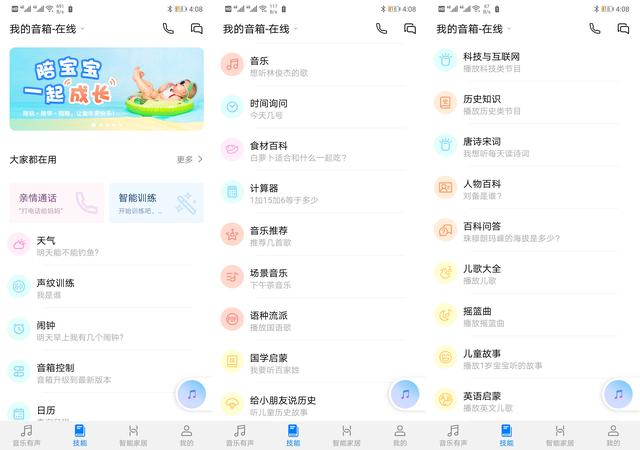智能音箱連接上網絡之后,你可以盡情的吩咐使喚小藝智能音箱了,具體喚醒指令為“小藝小藝,XXXX”,設置兩聲小藝喚醒智能音箱可能是為了降低日常生活中的誤操作。華為AI智能音箱可操控的技能還是比較豐富的,例如詢問天氣,設置鬧鈴,計算器功能,百科,食譜,音樂推薦,相聲,小說,廣播,唐詩宋詞,育兒知識等等可以滿足你日常的大部分體驗。