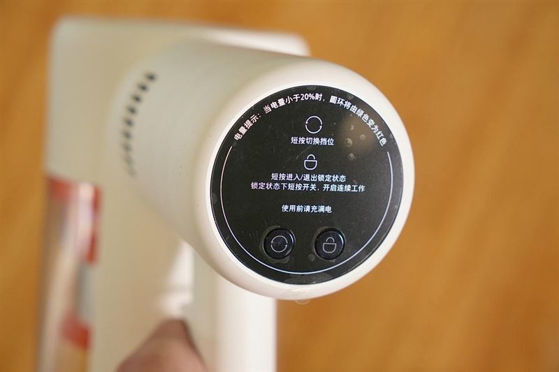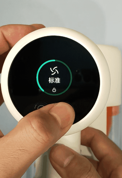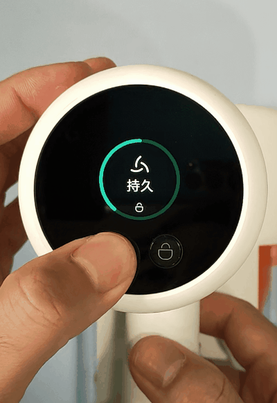 12.5萬(wàn)轉(zhuǎn)的高速電機(jī)在此,電機(jī)上覆蓋著彩色顯示屏,用按鍵調(diào)整操作。有強(qiáng)勁、持久、標(biāo)準(zhǔn)三擋風(fēng)力可選,支持點(diǎn)按和連續(xù)兩種工作模式。電量環(huán)有兩種顏色,電量高于20%顯示為綠色,電量低于20%顯示為紅色。