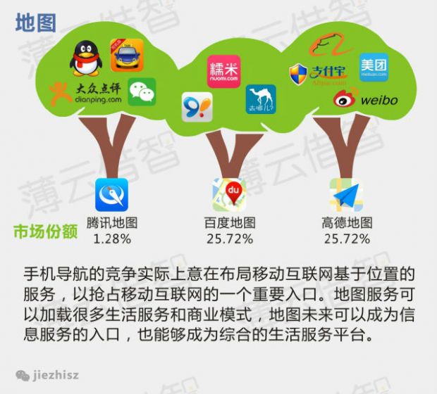 BAT無疑正走在中國移動互聯網發展的前列,它們三家各具優勢,都手握著屬于自己的那張王牌:百度最大的優勢是產品+平臺,其布局已在發揮效力,各個產品間也開始產生協同效應,未來將海輝關注與做大做強;騰訊擁有QQ和微信,并且微信也正在加速商業化進程,據說下一句打算進行O2O布局;阿里雖然缺乏移動端的布局經驗,但由于資金雄厚而收購了很多新興公司,并也開始整合資源了。不過,我只想弱弱地問:BAT什么都干了,還有別人怎么玩啊?