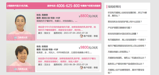 調(diào)查顯示,目前中國年均誕生1600萬名新生兒。中國新生代母嬰群體人均年消費為5000元至18000元,到2015年,中國母嬰市場總量將達到2萬億元。這兩年來,市場上提供月嫂服務(wù)的家政公司數(shù)量越來越多,服務(wù)者的薪酬也逐年水漲船高。但高昂收費的背后往往是是魚龍混雜的服務(wù)機構(gòu)、不夠?qū)I(yè)的服務(wù)者和無標準規(guī)范的服務(wù),痛點十分明顯。
