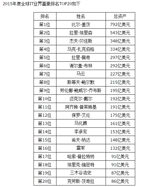 原標題:2015年全球IT業界富豪榜 馬云227億領跑亞洲