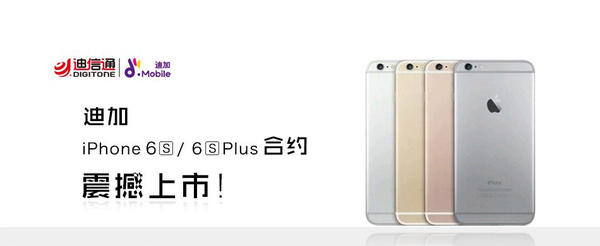 虛商迪信通通信將推迪加iPhone 6S/plus合約,用戶可免費獲得迪加精選靚號以及半年的免費語音、流量、短信套餐服務:iPhone 6S/plus在北京迪信通總店首銷當日,購買iPhone 6S/plus用戶均可免費獲得迪加170靚號一個,將有機會免費獲得為期6個月79元/月套餐。