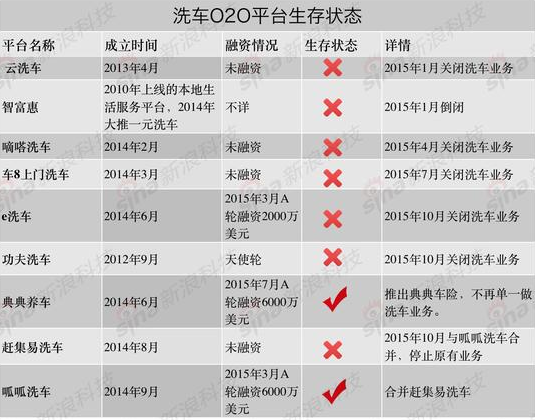 去年,國內一共有九家提供O2O洗車服務的初創公司,但現在,只有兩家活了下來(見下圖)。