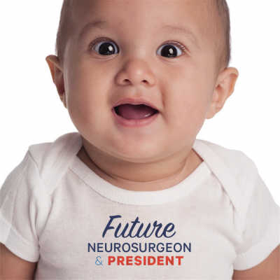 “Keep Calm and Carson On”,卡森在T恤上落俗地套用了那句滿大街的話,為了讓所有人都知道自己的“神經(jīng)兒童醫(yī)學(xué)”出身,他在店鋪里擺滿了各種嬰幼兒童用品,20美元的嬰兒服,印有“未來的神經(jīng)學(xué)家和總統(tǒng)”。