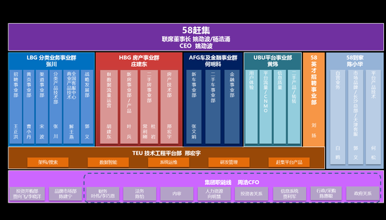 4、副總裁黃煒繼續主管UBU平臺事業部;副總裁劉揚繼續主管58英才招聘事業部;高級副總裁邢宏宇繼續主管TEU技術工程平臺部。