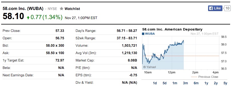 58同城預(yù)計(jì),2015財(cái)年第四季度總營(yíng)收預(yù)計(jì)在2.40億美元至2.45億美元之間,同比增長(zhǎng)199%至205%。